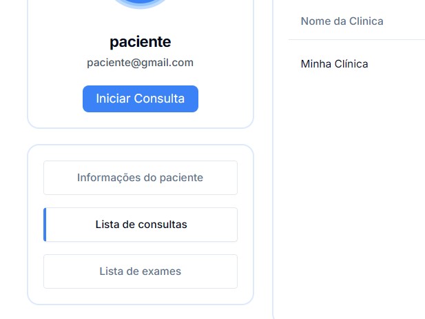Já na página do paciente clique em "Lista de consultas" (botão abaixo do perfil do paciente)